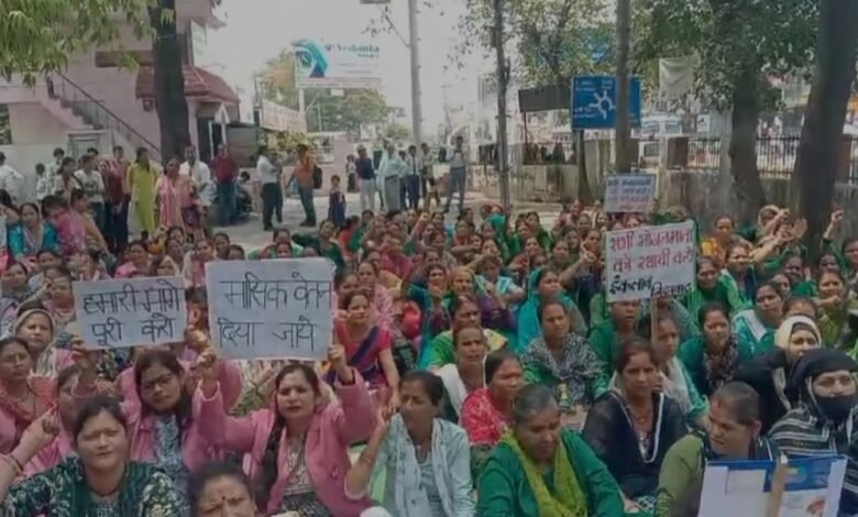 एकदिवसीय हड़ताल पर भोजन माता और आशा वर्कर