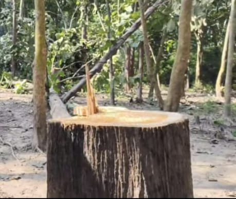 वन माफिया का आतंक: 14 सागौन के पेड़ कटे, जंगल उजड़े…