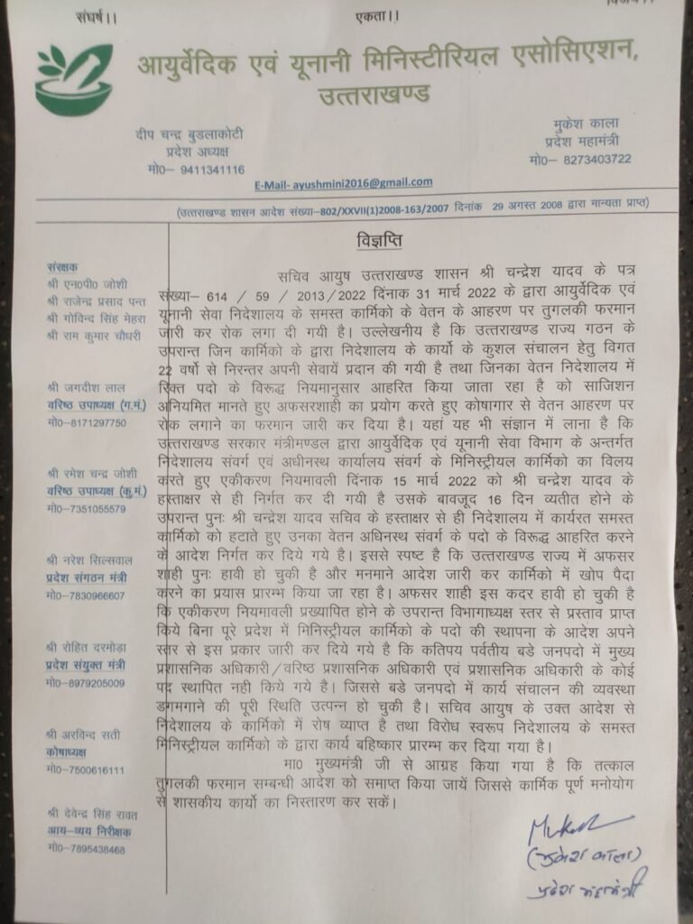 *बिग ब्रेकिंग: आयुर्वेदिक यूनानी विभाग के सचिव के तुगलकी फरमान के विरोध में प्रदर्शन शुरू