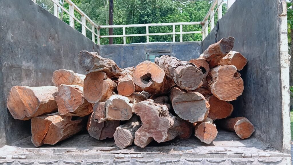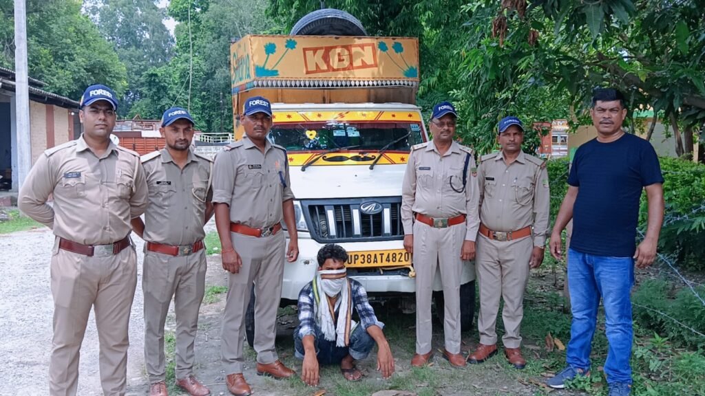 खैर की लकड़ी के साथ एक तस्कर गिरफ्तार, कुख्यात तस्कर सोनू कश्यप फरार,वन विभाग दे रहा है पकड़ने के लिए दबिश।