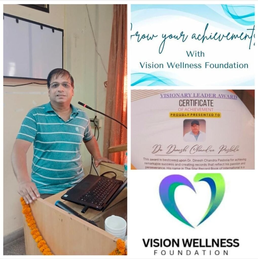 📍विजन वेलनेस फाउंडेशन द्वारा दिया गया अवार्ड।