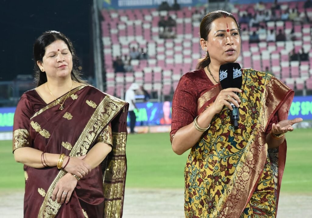उन्होंने दोनों महिला टीमों की कप्तानों को टॉस के बाद शुभकामनाएं दीं और खिलाड़ियों का उत्साहवर्धन किया। रेखा आर्या ने कहा कि उत्तराखंड प्रीमीयर लीग प्रदेश में क्रिकेट को लोकप्रिय बनाने के साथ ही युवाओं को बड़ी पहचान दिलाने का माध्यम बनेगी। उन्होंने विश्वास जताया कि निकट भविष्य में इस टूर्नामेंट की गूंज पूरे देश में सुनाई देगी।