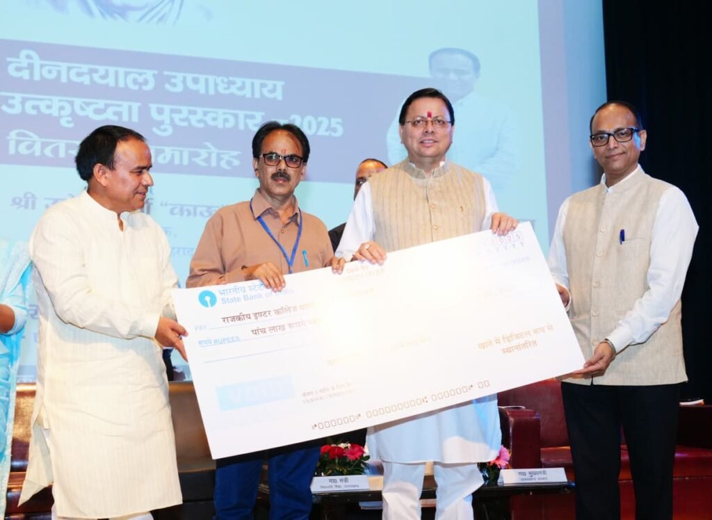 मुख्यमंत्री पुष्कर सिंह धामी ने गुरुवार को नानूरखेड़ा स्थित एससीईआरटी ऑडिटोरियम में आयोजित पंडित दीनदयाल उपाध्याय शैक्षिक उत्कृष्टता पुरस्कार समारोह में बोर्ड परीक्षाओं में शीर्ष 10 स्थान प्राप्त करने वाले हाईस्कूल एवं इंटरमीडिएट के 75 मेधावी छात्र-छात्राओं को पुरस्कृत किया। इस मौके पर बोर्ड परीक्षाओं में उत्कृष्ट परिणाम देने वाले विद्यालयों के तीन-तीन प्रधानाचार्यों के साथ ही श्रेष्ठ प्रदर्शन करने वाले शीर्ष 50-50 विद्यालयों के प्रधानाचार्यों को भी सम्मानित किया।