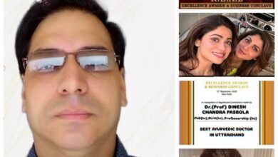 मशहूर अभिनेत्री शमिता शेट्टी ने डॉ० डी० सी० पसबोला को दिया Best Ayurvedic Doctor in Uttarakhand Award