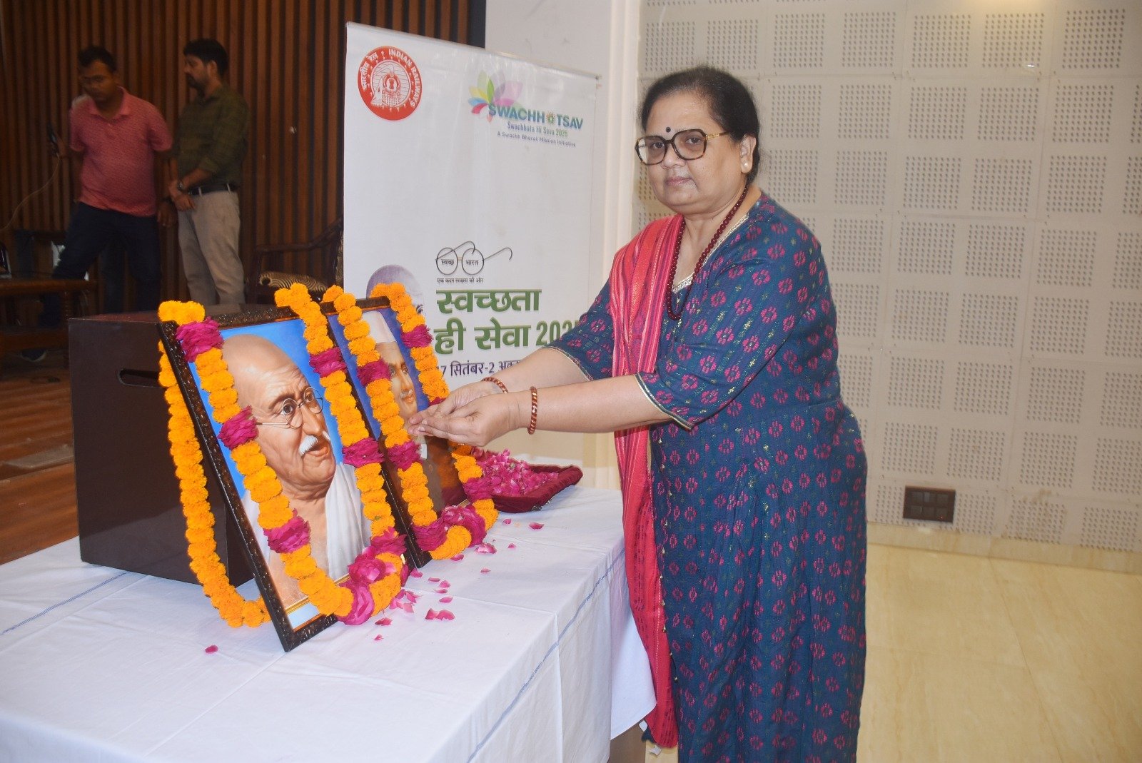 बरेली 02 अक्टूबर, 2025ः पूर्वोत्तर रेलवे के इज्जतनगर मंडल पर ई. एन. एच. एम. विभाग के तत्वावधान में ‘‘स्वच्छता ही सेवा‘‘ अभियान के अन्तर्गत प्रथम चरण 1 अगस्त से 15 अगस्त 2025 तक तथा द्वितीय चरण 16 अगस्त से 2 अक्टूबर, 2025 तक मनाये जा रहे ’स्वच्छता ही सेवा अभियान-2025’ के तहत रेलवे अधिकारी क्लब, इज्जतनगर के प्रेक्षागृह में आयोजित समारोह में राष्ट्रपिता महात्मा गाँधी के 156वीं जयंति एवं भारत के गौरव लालबहादुर शास्त्री के जन्म दिवस के अवसर पर मंडल रेल प्रबंधक, सुश्री वीणा सिन्हा, अपर मंडल रेल प्रबंधक मनोज कुमार सहित मंडल के सभी शाखा अधिकारियों ने माल्यार्पण एवं पुष्पांजली अर्पित कर अपने श्रद्वा सुमन अर्पित किये।