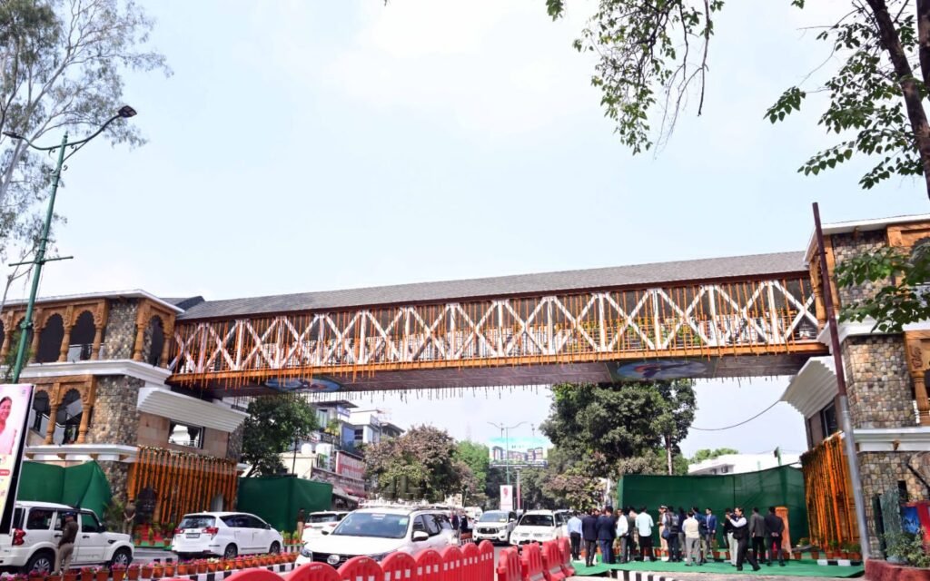 उत्तराखंड लोक निर्माण विभाग (PWD) द्वारा ₹9 करोड़ की लागत से निर्मित यह पुल स्थानीय हिमालयी वास्तुकला का सुंदर उदाहरण है। रैंप और रेलिंग के साथ यह पूरी तरह सुगम पहुँच (universal access) प्रदान करता है। यह पुल अब व्यस्त राजपुरा रोड पर पैदल यात्रियों की सुरक्षा के लिए एक सुरक्षित विकल्प बन गया है।