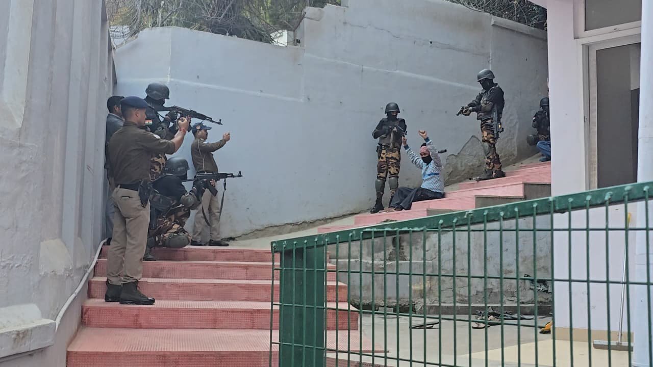 आतंकवाद निरोधक दस्ते की टीम द्वारा जवाबी कार्यवाही के दौरान छुपे हुए आतंकवादियों में से दो को मार गिराया तथा तीन को जिंदा गिरफ्तार किया। पकड़े गए आतंकवादियो को पूछताछ हेतु थाने भेजा गया है।