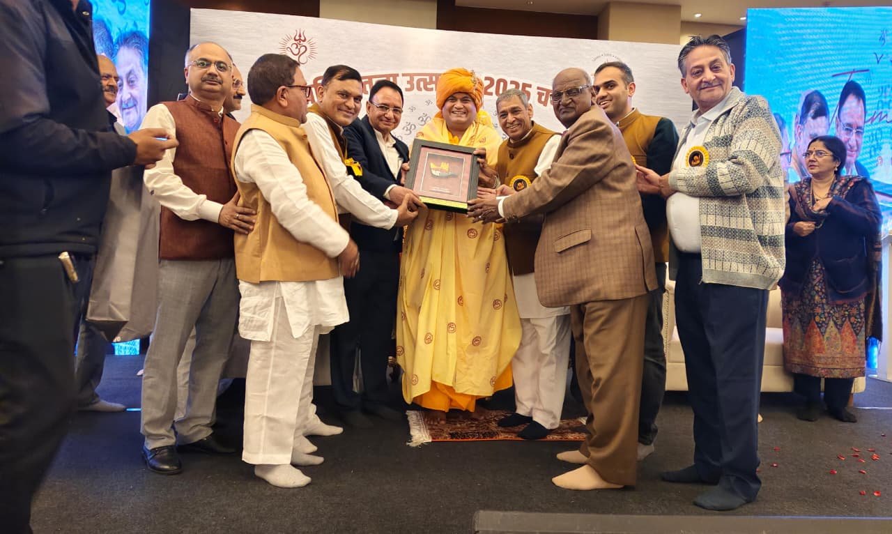 फोटो कैप्शन: 2 .चंडीगढ़ के जीरकपुर स्थित पार्क प्लाज़ा में आयोजित ‘शक्ति चेतना उत्सव’ में ‘सिद्धगुरुवर’ श्री सिद्धेश्वर ब्रह्मर्षि गुरुदेव का सम्मान करते हुए आयोजक।