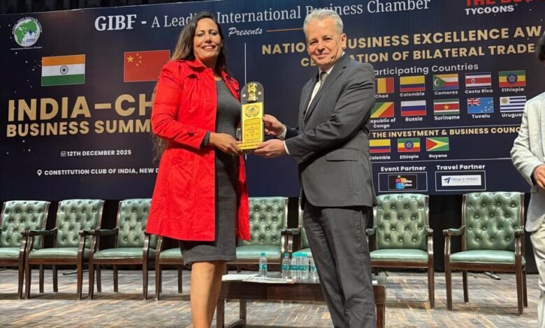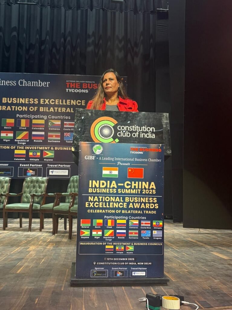 Ambassador Dr. Ashma Begum was honored with the INDIA CHINA BUSINESS AWARD (The Best Female Entrepreneurs of Northeast to the Global) by H.E PATORGISE at the Constitution Club of India on December 12, 2025. The award ceremony was part of the China-India Business Summit.