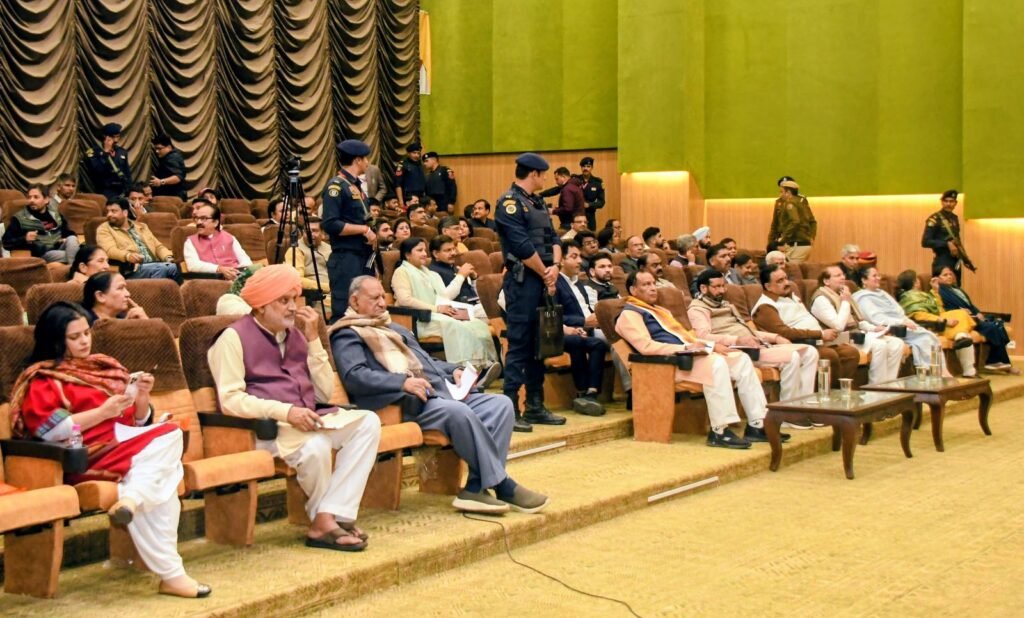 पंचकूला , 14 दिसंबर। हरियाणा के मुख्यमंत्री नायब सिंह सैनी और भाजपा के प्रदेश अध्यक्ष पंडित मोहन लाल बड़ौली ने पंचकूला स्थित भाजपा प्रदेश कार्यालय पंचकमल के अटल सभागार में मंत्रियों, विधायकों, जिला अध्यक्षों, जिला प्रभारियों सहित करीब 200 पार्टी पदाधिकारयों के साथ बैठकर बड़ी स्क्रीन पर लोकसभा में दिए गए केंद्रीय गृहमंत्री अमित शाह के भाषणा को सुना।