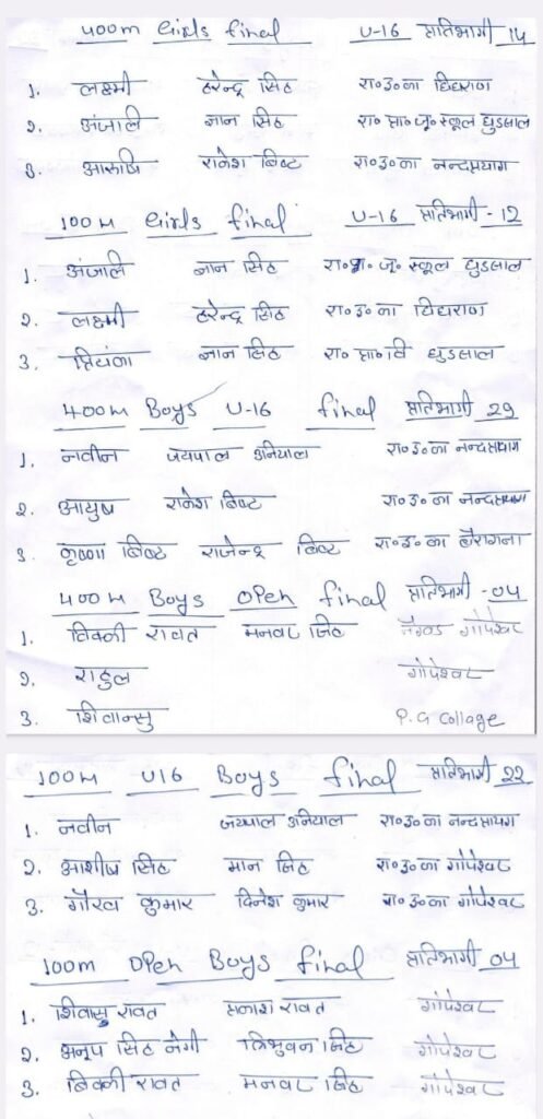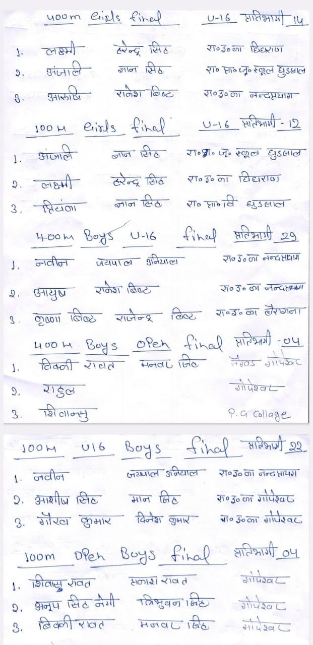 19 दिसंबर व 20 दिसंबर को जिला मुख्यालय गोपेश्वर स्टेडियम में तीनों विधानसभाओं के प्रथम स्थान प्राप्त करने वाले प्रतिभागी खिलाड़ियों को जिला स्तर पर खेलों में प्रतिभा करना होगा।