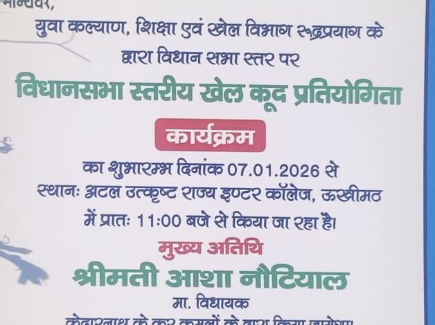 उन्होंने कहा कि जिसका उद्घाटन केदारनाथ विधायक आशा नौटियाल द्वारा किया जाएगा। वहीं यह प्रतियोगिता 7 जनवरी से 10 जनवरी 2026 तक चलेगी जिसमें 7 जनवरी को अण्डर -19 बालक एथलेटिक्स कबड्डी, खो-खो मुर्गाझपट सीधे विधानसभा स्तर पर वॉलीबॉल पिटठू,