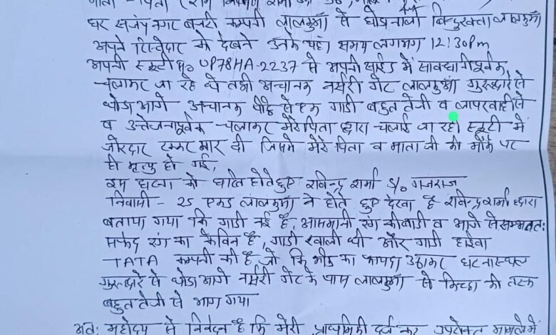 लालकुआं में हाईवा की टक्कर से दंपती की मौत के मामले में परिजनों ने दी कोतवाली में तहरीर