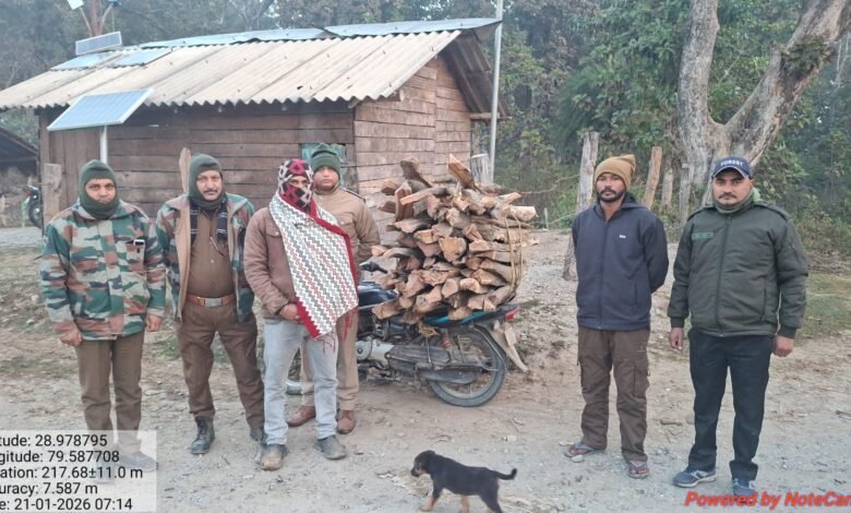 धौरा डाम मार्ग पर वन विभाग का बड़ा शिकंजा, जलौनी लकड़ी के साथ बाइक सवार तस्कर गिरफ्तार