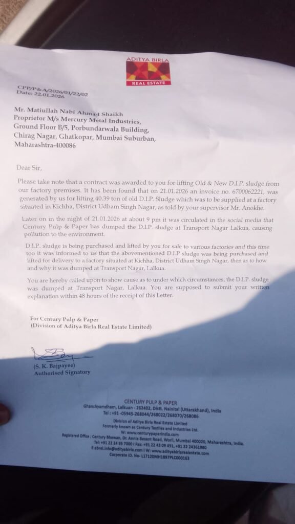 ट्रांसपोर्ट नगर में स्लज डालने के मामले में सेंचुरी मिल की बड़ी कार्रवाई, ठेकेदार ने हटवाया कचरा