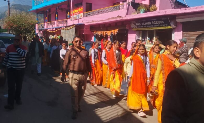 खबर है ऊखीमठ से आपको बता दें कि रविवार को नगर पंचायत ऊखीमठ में हिन्दू सम्मेलन का भव्य आयोजन किया गया जिसमें मंधुगंगा होटल से मुख्य बाजार होते हुए रामलीला मैदान ऊखीमठ तक समस्त छात्र छात्राओं व महिला मंगल दल और जनप्रतिनिधियों द्वारा जल कलश यात्रा निकाली गई उसके बाद रामलीला मैदान में स्वामी प्रवणानंद विघामंदिर ऊखीमठ, सरस्वती शिशु मंदिर ऊखीमठ,सरस्वती विद्या मंदिर ऊखीमठ, अटल उत्कृष्ट राजकीय इण्टर कालेज के एनसीसी के छात्र छात्राओं व विभिन्न विघालयों द्वारा रंगारंग सांस्कृतिक कार्यक्रम प्रस्तुत किया गया