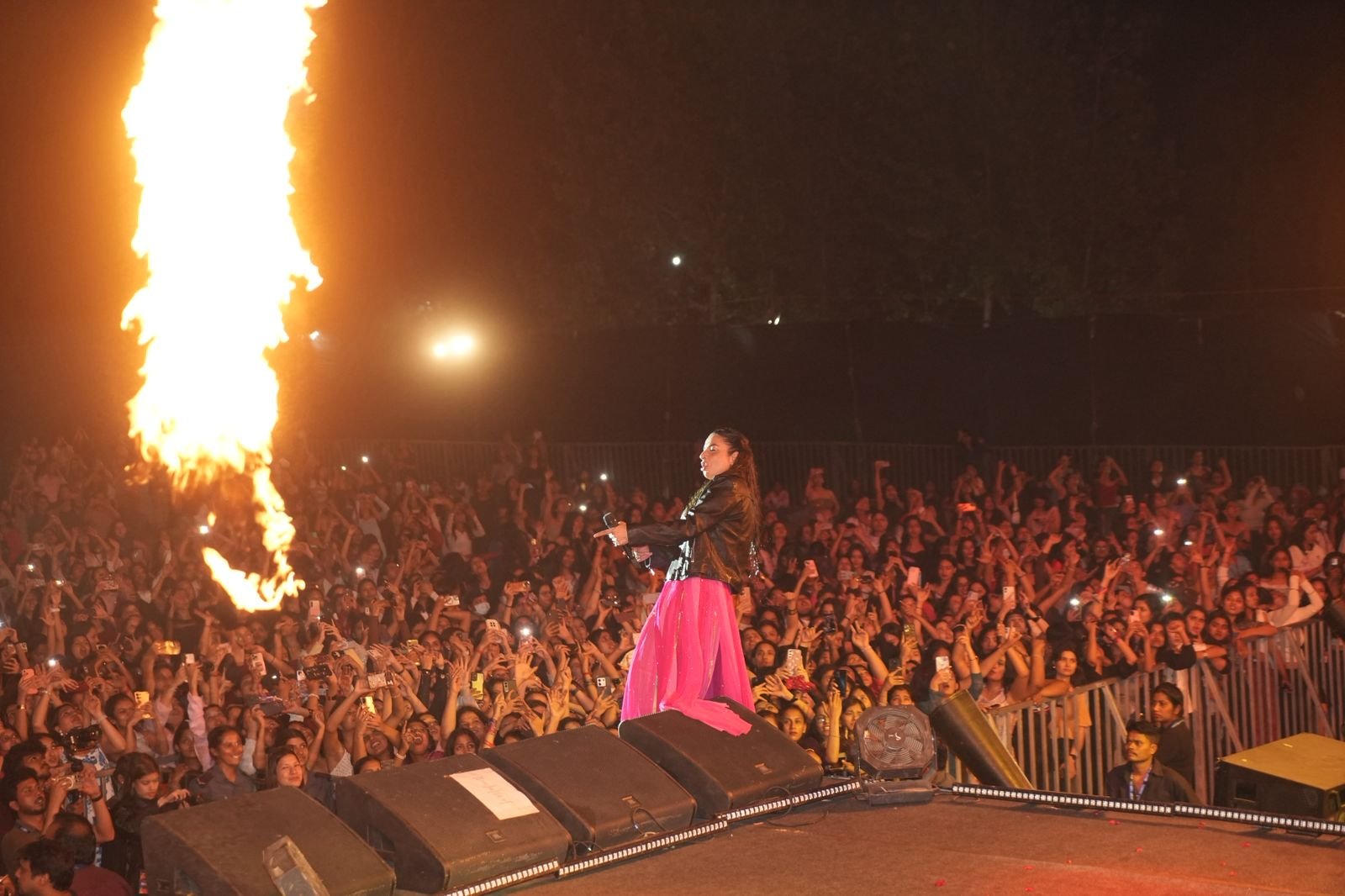 जैसे ही जैस्मीन सैंडलस ने मंच संभाला, पूरा परिसर तालियों और नारों की गड़गड़ाहट से गूंज उठा। उन्होंने अपने चर्चित गानों और लोक गीतों के फ्यूजन से युवाओं के बीच जो समां बांधा, वह देर रात तक जारी रहा। उन्होंने ‘सिप-सिप’, ‘शरारत”’और ‘ ‘मैं और तू’ जैसे गीतों की झड़ी लगा दी। शो के बीच युवाओं की भारी फरमाइश पर उन्होंने अपने चुनिंदा लोक गीतों का फ्यूजन भी पेश किया, जिसने माहौल को और भी यादगार बना दिया। जैस्मीन ने न केवल अपनी गायकी बल्कि अपने संवादात्मक अंदाज से भी प्रशंसकों का दिल जीत लिया।