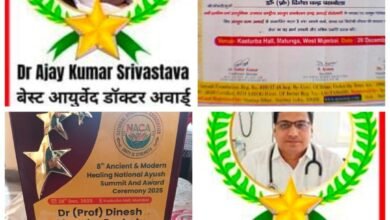 डॉ० (प्रो०) डी० सी० पसबोला “आयुष रत्न अवार्ड” से सम्मानित। डॉ० अजय कुमार श्रीवास्तव को मिला “बेस्ट आयुर्वेद चिकित्सक सम्मान”।…